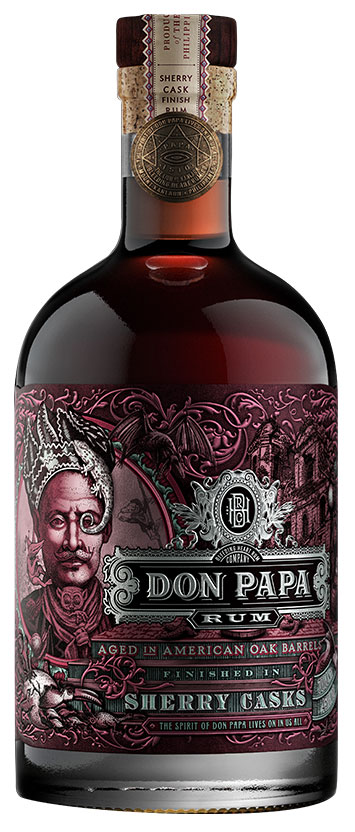 El Don Papa acabado en barricas de Jerez es un ron con base de melaza destilado en columna. Madura durante 4 años en barricas de roble americano ex bourbon y a continuación se afina durante 18 meses en 4 tipos diferentes de barricas de Jerez: Fino, Pedro Ximenez, Cream y Palo Cortado.
