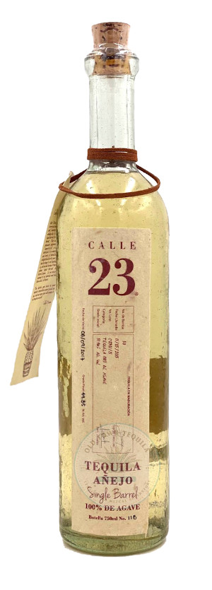Calle 23 Single Barrel Añejo Calle 23Tequila Tequila envasado directo de la barrica al grado preciso y con su color natural. Este es un tequila de producción muy limitada: solo 5 barricas. Doble destilación en alambique y 28 meses de añejamiento.